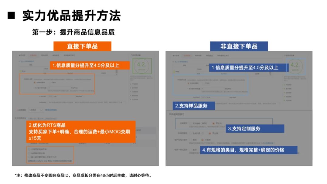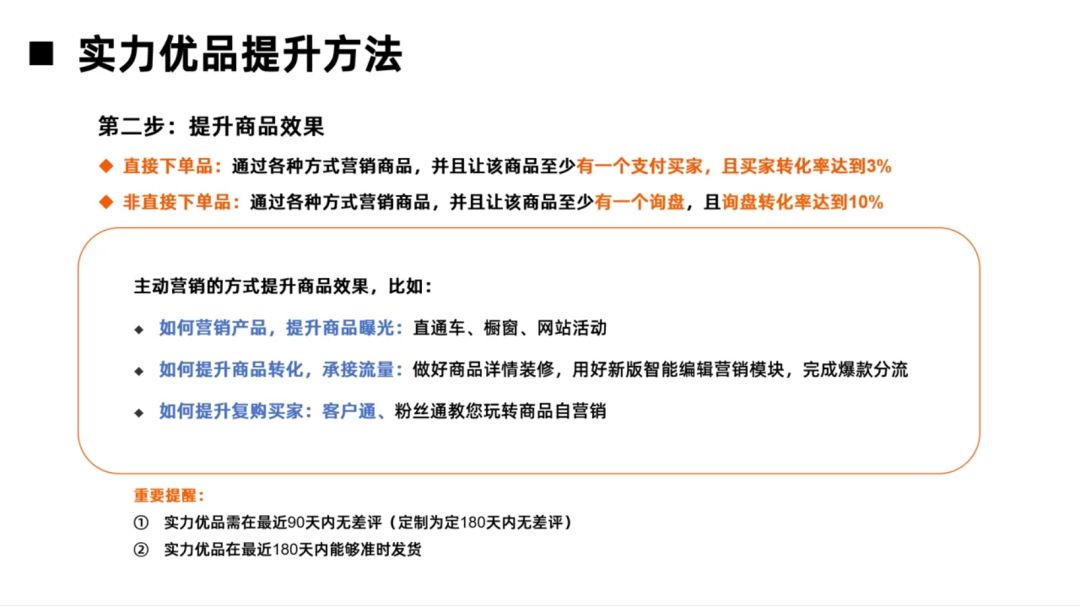 因此,讓店鋪內更多商品達到實力優(yōu)品的層級,有利于平臺的成長,有助于獲取更多流量曝光和成交機會。