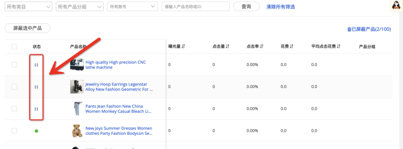 不想推廣的,直接在商品上點(diǎn)擊暫停,持續(xù)生效!