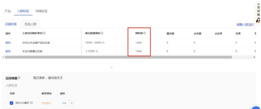 2、商家可在計(jì)劃中,自主設(shè)置人群、地域標(biāo)簽的重點(diǎn)投放設(shè)置,系統(tǒng)將在您投放的基礎(chǔ)上,進(jìn)行對(duì)應(yīng)人群的重點(diǎn)投放,(含特定行業(yè)人群標(biāo)簽)