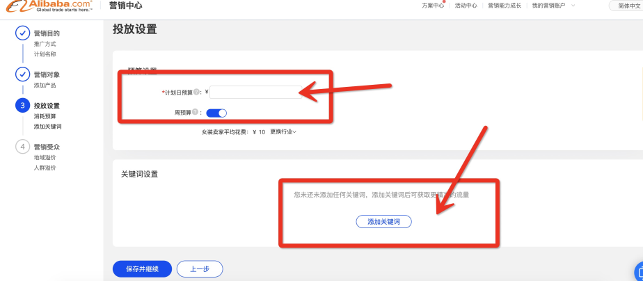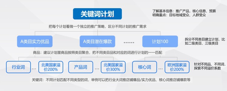 搭建計劃時,明確推廣目的和預算,選定商品,投放重點地域/人群