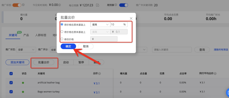 會根據(jù)關鍵詞當前的競爭數(shù)據(jù),給到您進入PC主搜的建議價格,您在當前界面設置完畢價格后,點擊確定即可;