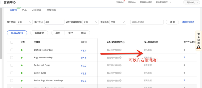 推廣狀態(tài):篩選當前不同狀態(tài)的關鍵詞;