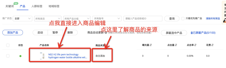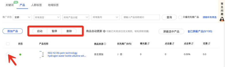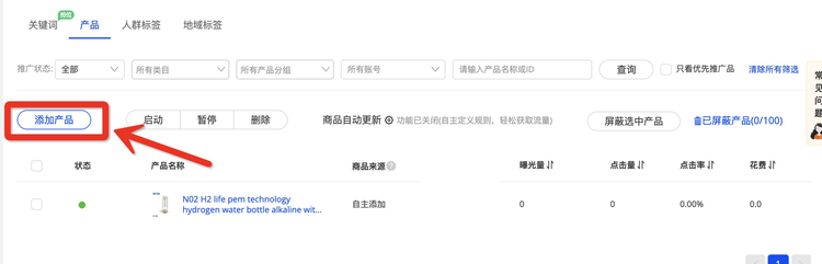 • 您的自主添加商品除非您手動刪除,否則不會因您開啟商品自動更新,而被踢出計劃,不被推廣;(如您自主添加的商品在屏蔽品當中,則該產(chǎn)品還是會被推廣、產(chǎn)生花費的哦)