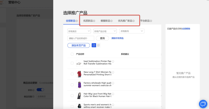 您可以根據(jù)自身需求設置推廣產(chǎn)品,也可以根據(jù)系統(tǒng)的商品建議進行選品;