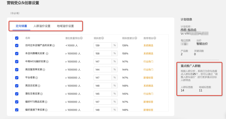 一定要記得設置重點推廣人群哦!可以幫助你: