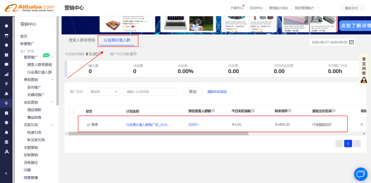 第三步:點(diǎn)擊左側(cè)導(dǎo)航,進(jìn)入行業(yè)高價(jià)值人群查看計(jì)劃,可點(diǎn)擊計(jì)劃進(jìn)行產(chǎn)品修改