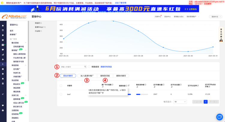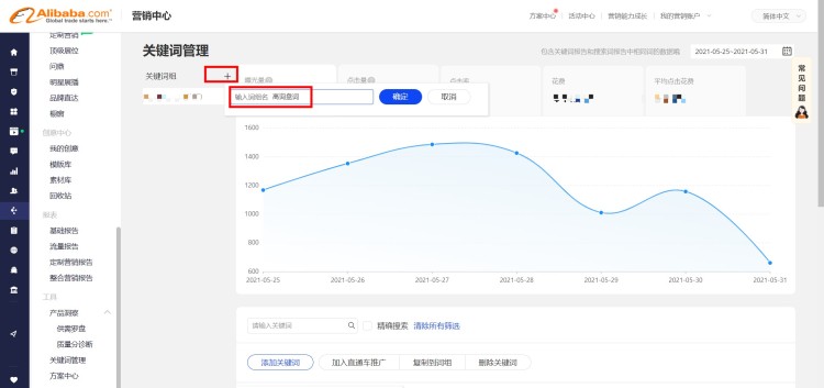 點(diǎn)擊導(dǎo)航【關(guān)鍵詞管理】,即可看到當(dāng)前的關(guān)鍵詞組;新版關(guān)鍵詞推廣會將您之前的詞組自動遷移至關(guān)鍵詞管理,您也可以根據(jù)自身需求,新建詞組;
