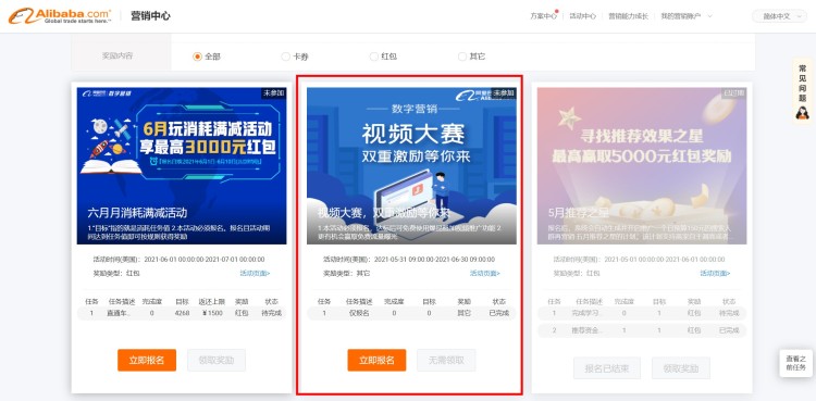 第一步:在MA-營銷中心-活動(dòng)中心,找到視頻大賽活動(dòng),完成報(bào)名