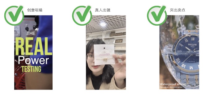 - 視頻前3秒點(diǎn)明產(chǎn)品是什么,或者創(chuàng)意類的吸睛內(nèi)容