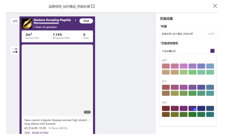 背景色:可以選擇官網(wǎng)背景的主題顏色。目前不支持上傳背景圖