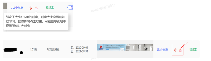 劃重點(diǎn):如下圖當(dāng)一個(gè)創(chuàng)意,大于等于5MB時(shí),系統(tǒng)會(huì)給出“紅色三角”提醒預(yù)警。