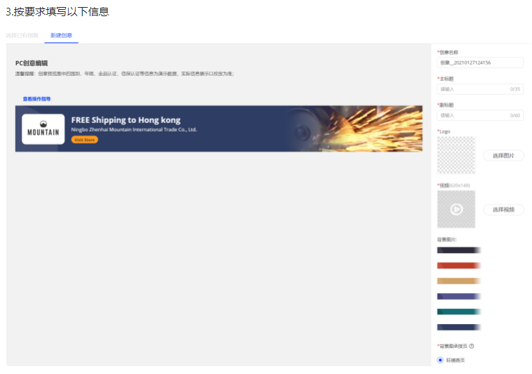 創(chuàng)意名稱 : 填寫創(chuàng)意名稱,方便后續(xù)查找(不會展示給買家)