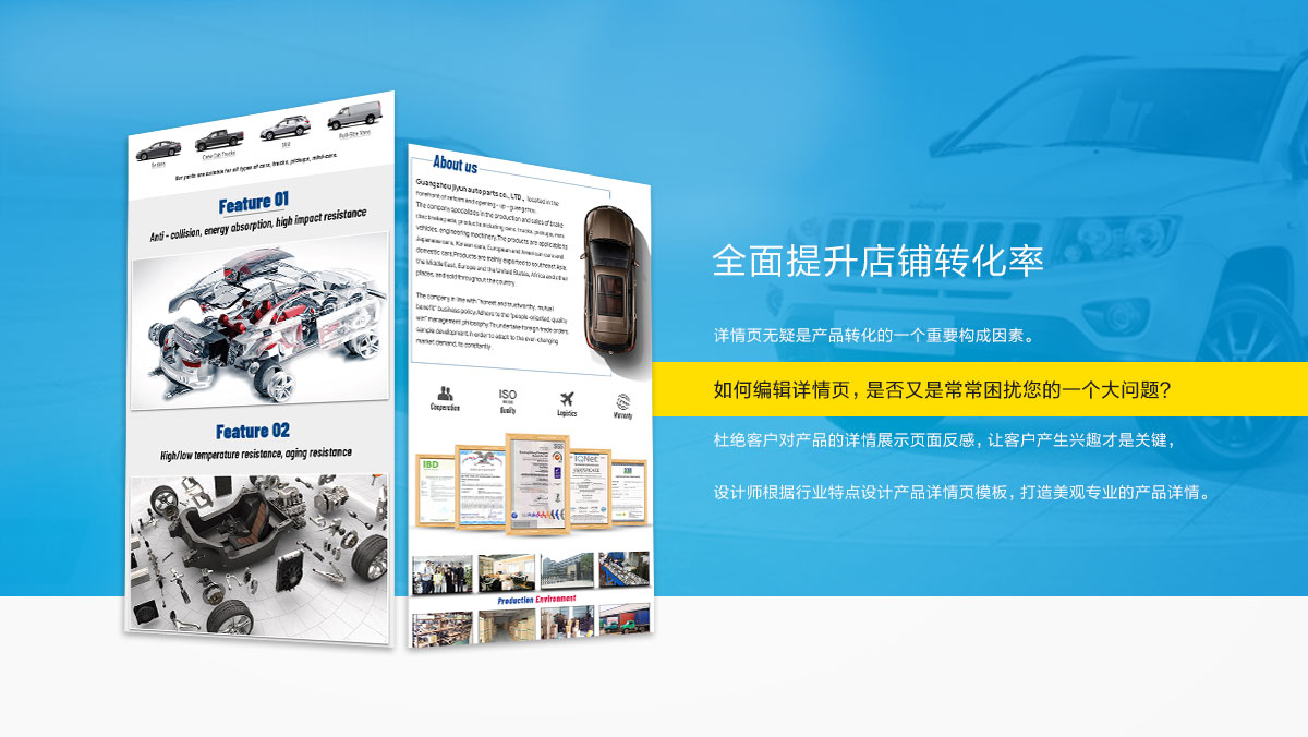 旺鋪首頁是企業(yè)形象的最好展示,對(duì)流量轉(zhuǎn)化起著至關(guān)重要的作用。同時(shí)首頁具備產(chǎn)品導(dǎo)購的功能,優(yōu)秀的界面布局能引導(dǎo)客戶長時(shí)間駐足店鋪,并且有效的找到相關(guān)產(chǎn)品以獲得更多詳情。