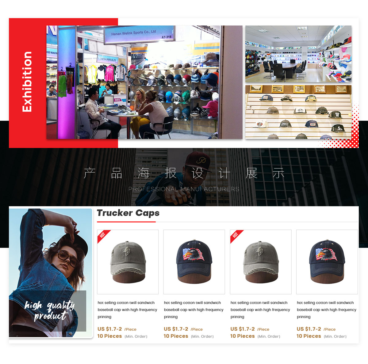偉聯(lián)運(yùn)動已通過ISO 9001認(rèn)證,先進(jìn)的產(chǎn)品設(shè)備和工作流程,它是COC工廠,公司自己的印刷車間和刺繡車間,保證了低成本,高質(zhì)量產(chǎn)品的出口。公司擁有約300名技術(shù)精湛,受過良好教育的員工,先進(jìn)的生產(chǎn)設(shè)施,占地面積6萬平方米,廠房面積2萬平方米。每月訂購200,000頂帽子可以按時(shí),安全地交付。